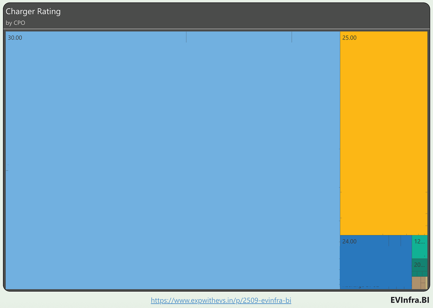 It will be surprising to many that roughly one third of India’s fast charging infrastructure, 3850 chargers, are rated 30kW and below. It has been a few years since the launch of mainstream cars that are rated to charge at 60kW and above.
