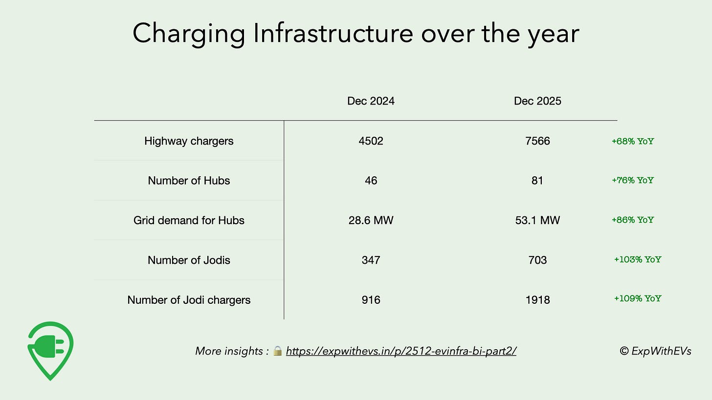 We saw over 100% growth Jodis and Jodi chargers in India. Over the year, CPOs in India have collectively put up 1918 chargers next to each other spread across 703 such locations. The Jodis are an interesting way to understand where CPOs believe there’s demand by electric vehicle owners. By studying the pricing, power rating, we can understand which CPO is targeting market share from which CPOs.